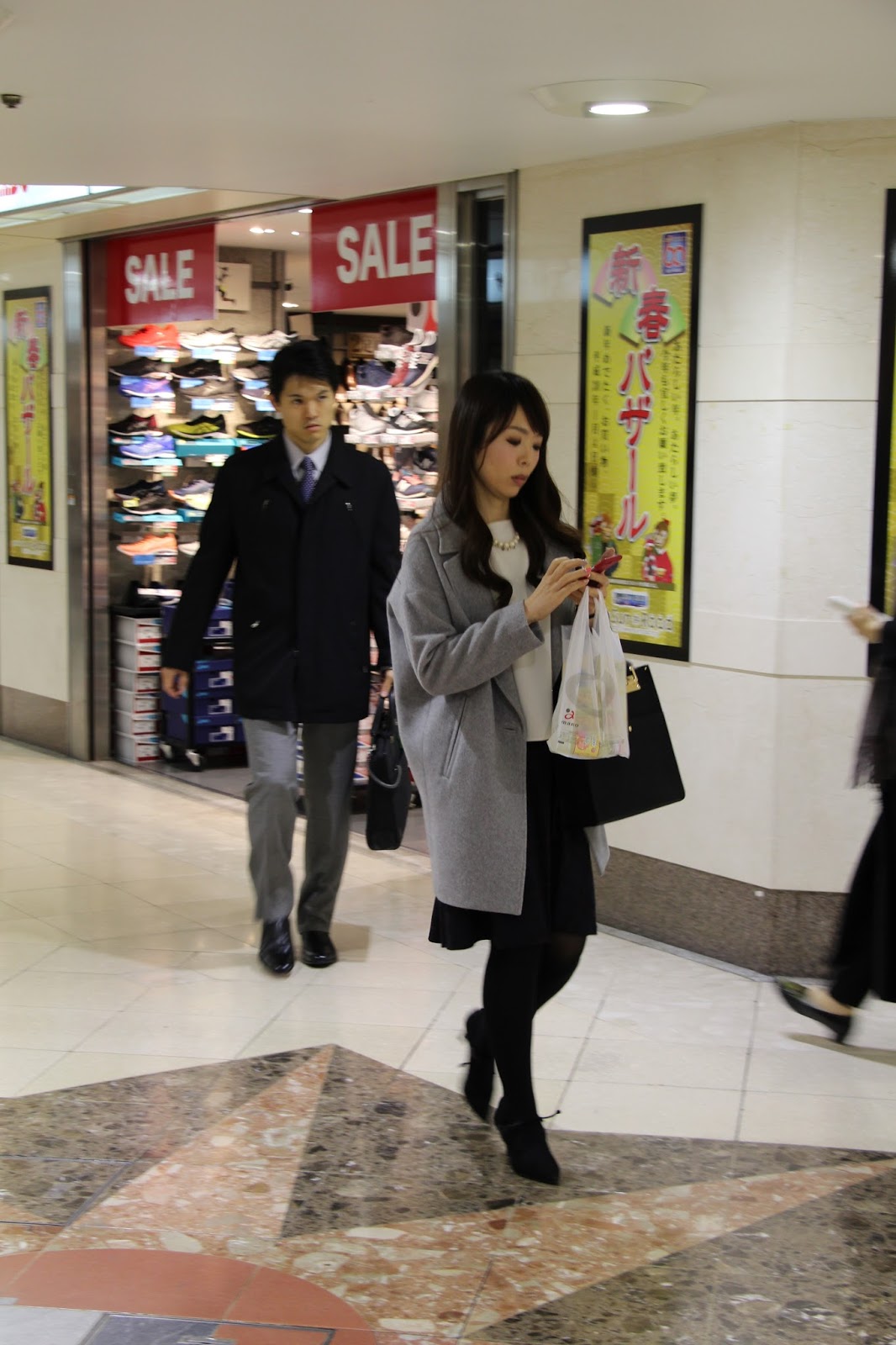 visiting an underground mall, and a bookstore.